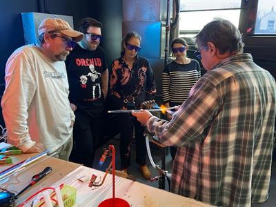 Learn the art of neon! This intensive introductory class teaches basic glass bending, and science. Each student combines their favorite bends to create their own organically shaped neon!