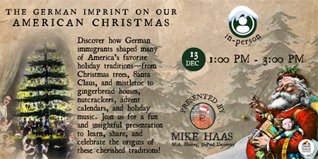 Join us for an insightful and festive presentation exploring the stories behind these beloved traditions. Whether you come to learn, share, or simply celebrate, you’ll leave with a deeper appreciation of the German influence on America’s most cherished holiday.